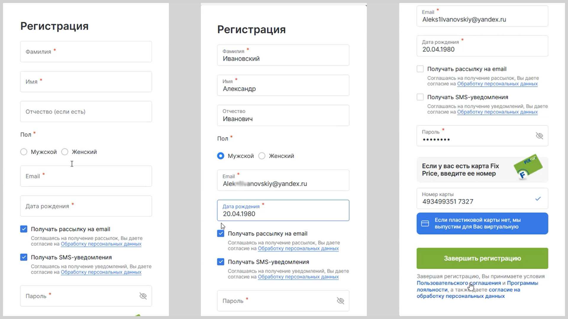 Фикс прайс карта регистрация (Подписка на новости, акции и т.д…)