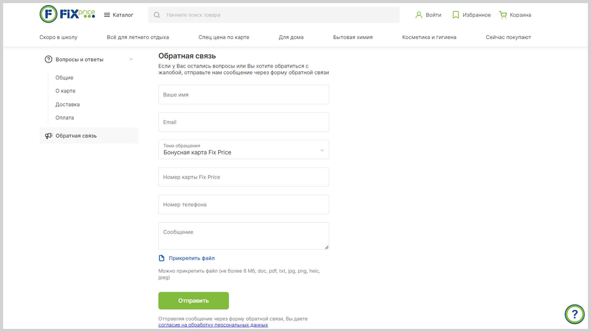 И последний, простой способ активации бонусной карты Fix Price — через обращение в службу поддержки по электронной почте. Для этого заполните форму обратной связи на сайте компании в разделе «Помощь».
