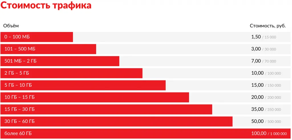 При подключенной услуге «Все Супер» на тарифном плане ежедневно предоставляется бесплатный пакет трафика объемом 100 МБ. После его исчерпания или при отключении опции действуют условия «Базовой тарификации интернета».