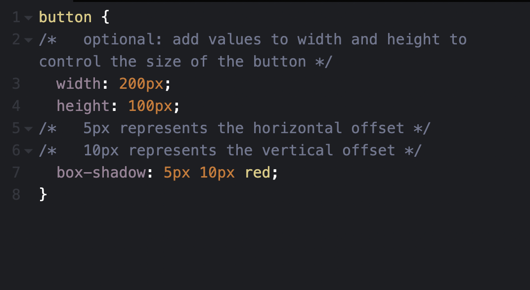 In this example, we set offset-x to 8px and offset-y to 6px, resulting in a shadow on the right and bottom sides of the box. The third value sets the blur radius to 10px, and the fourth value specifies the color of the shadow. You can also use spread radius, but we are not using it in this example.