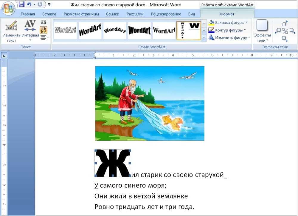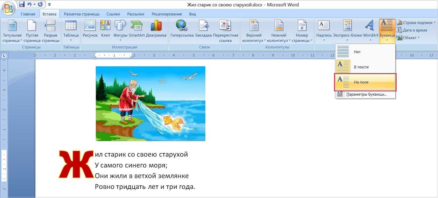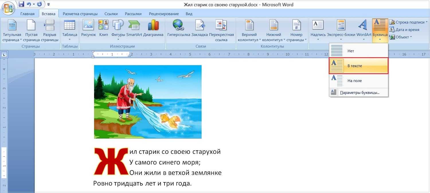 Как сделать буквицу в Word – Пример буквицы в ворде