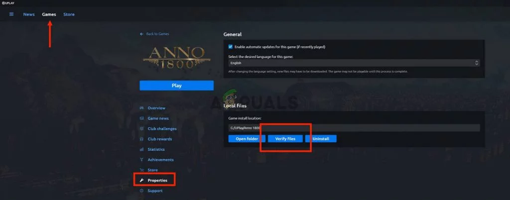- You will see the Verify files button under the Local files section. Click it and wait for the process to complete. After that, you will see a report about whether any files were redownloaded. Check to see if the same error appears when trying to download or update Uplay games.