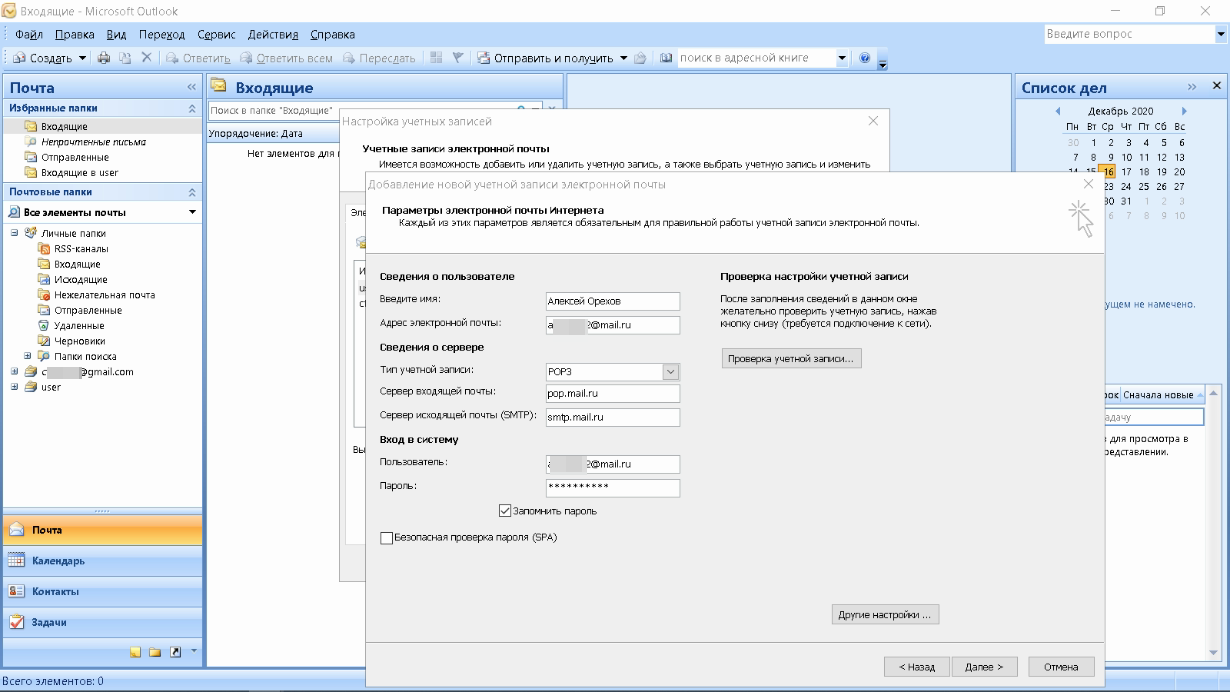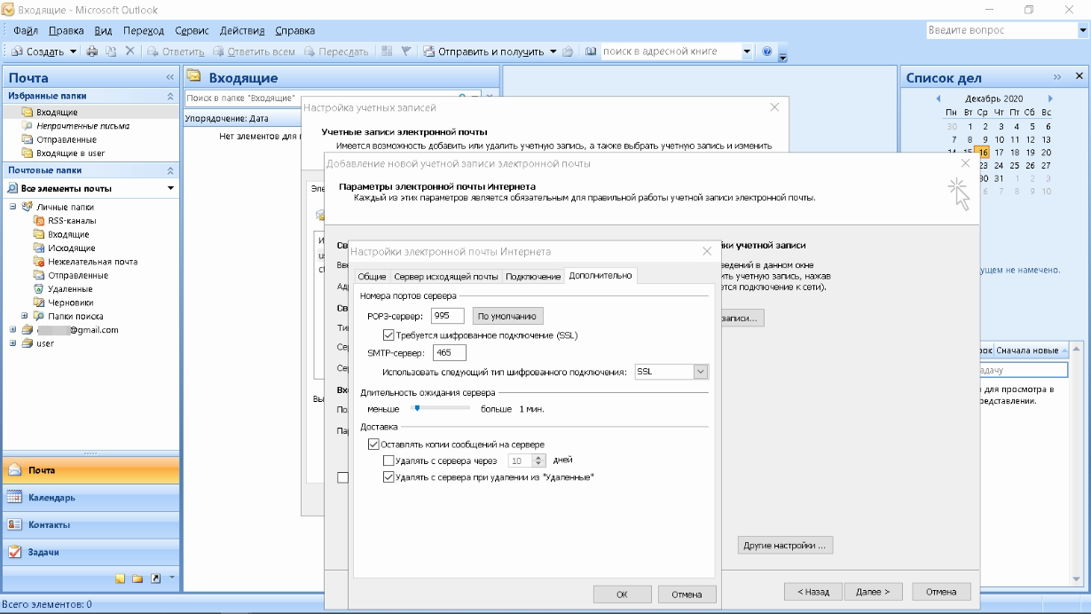 Настройка подключения бесплатных почтовых сервисов в Outlook