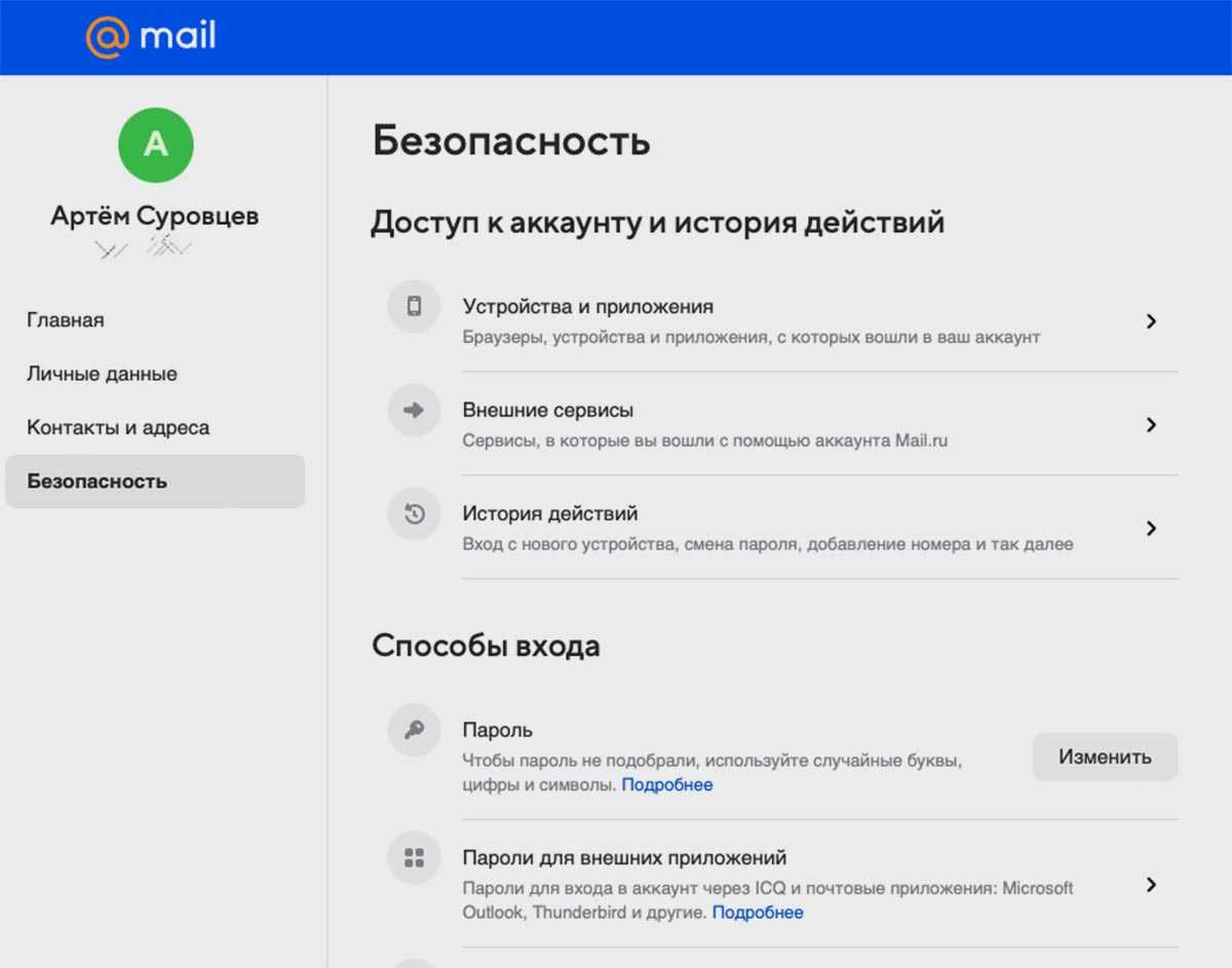 ► Перейдите в раздел Пароль и безопасность – Безопасность – Пароли для внешних приложений.