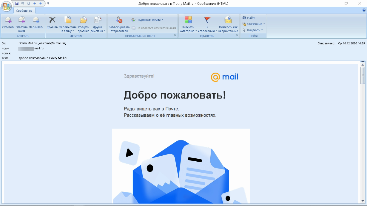 Рис. 4. Письмо в почте mail.ru с вложенными (прикрепленными) файлами.