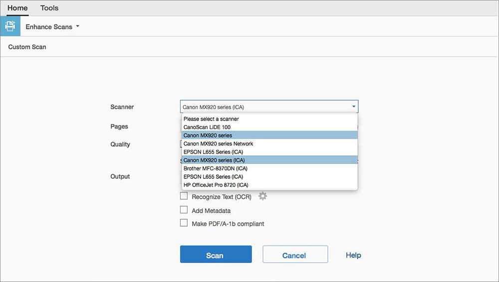 Стандартная процедура требует использования принтера и программы Acrobat. Она поддерживается на Windows, с помощью драйверов TWAIN, а также Windows Image Acquisition (WIA).