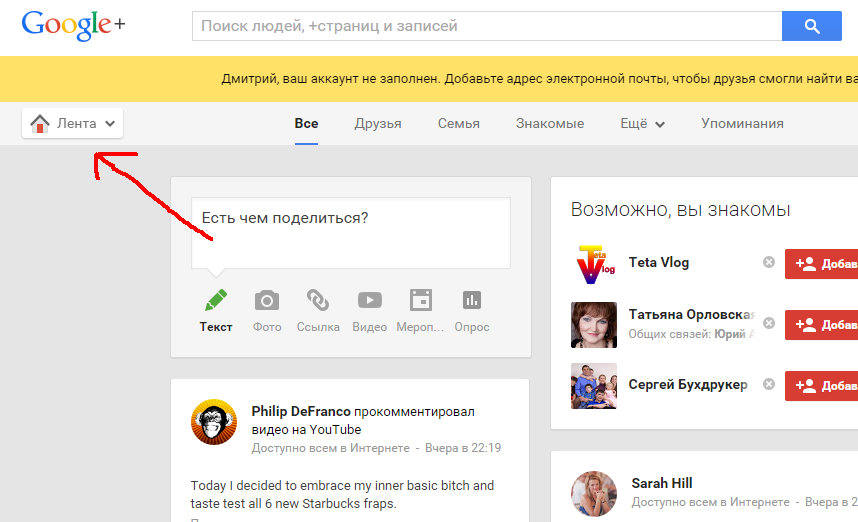 Для того чтобы использовать хенгаут, вам надо просто зарегистрироваться в Гугл+. После этого у вас появится слева меню выбора (так называемая «Лента»). Там и будет интересующий нас «Hangouts».