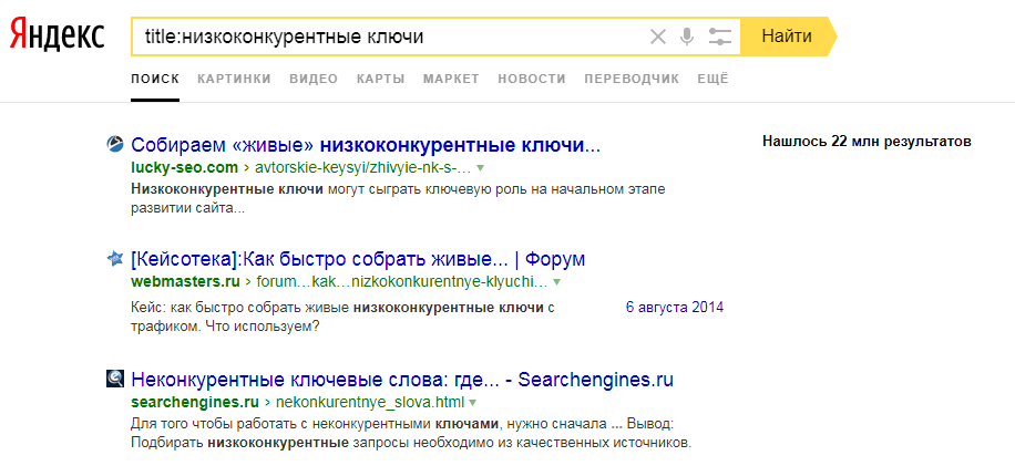 Команда, которая позволяет осуществить поиск в системе Яндекс по заголовкам страниц. Стоит отметить, что существует ряд спецсимволов, которые в Яндекс выполняют аналогичные функции как и в Google, а именно:
