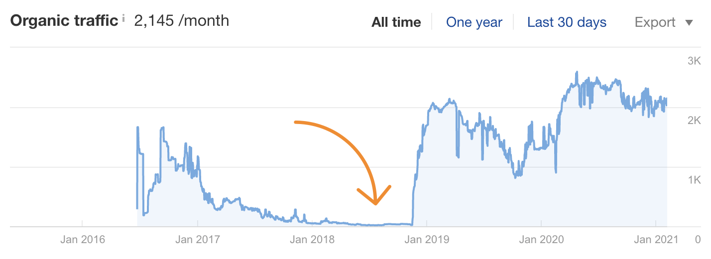 Ребята из Ahrefs в 2016 году создали отменный пост по SEO-оптимизации страниц сайта. Публикация показывала оригинальное исследование и давала много полезных рекомендаций, но не ранжировалась в поиске ни по каким соответствующим запросам.