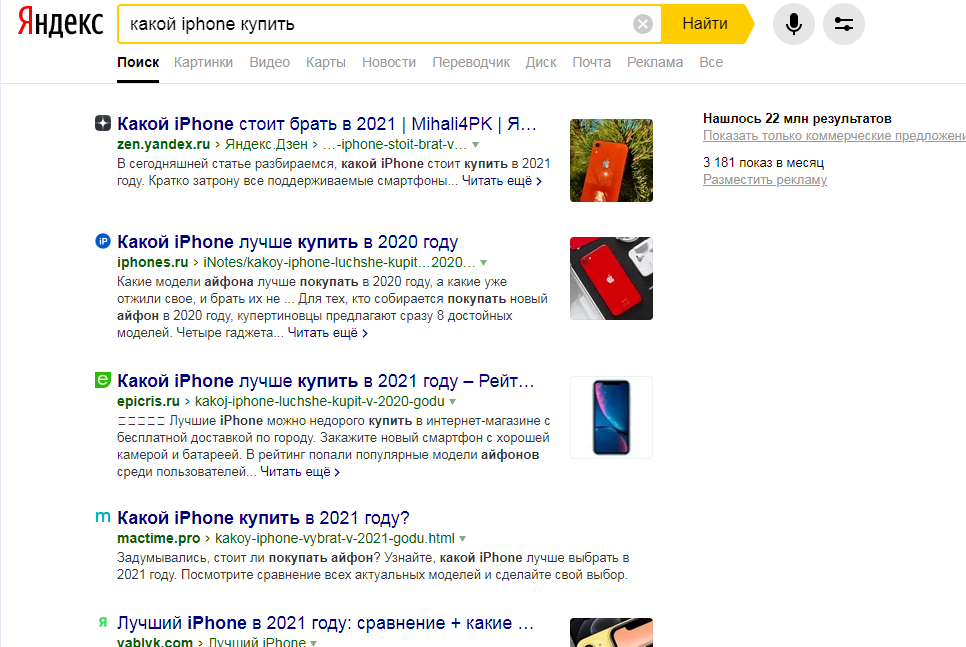 В вопросе подачи очень важно учитывать все детали в выдаче: год, указание ценовой политики (недорогие мощные ноутбуки), указание цены отсечки (лучшие смартфоны до 50 000 рублей).