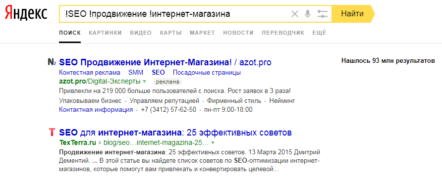 Если одна или несколько форм слова совпадает с другими словами, поиск может находить лишние страницы. Указав нормальную форму слова с помощью оператора !!, вы уберете многие из ненужных страниц.