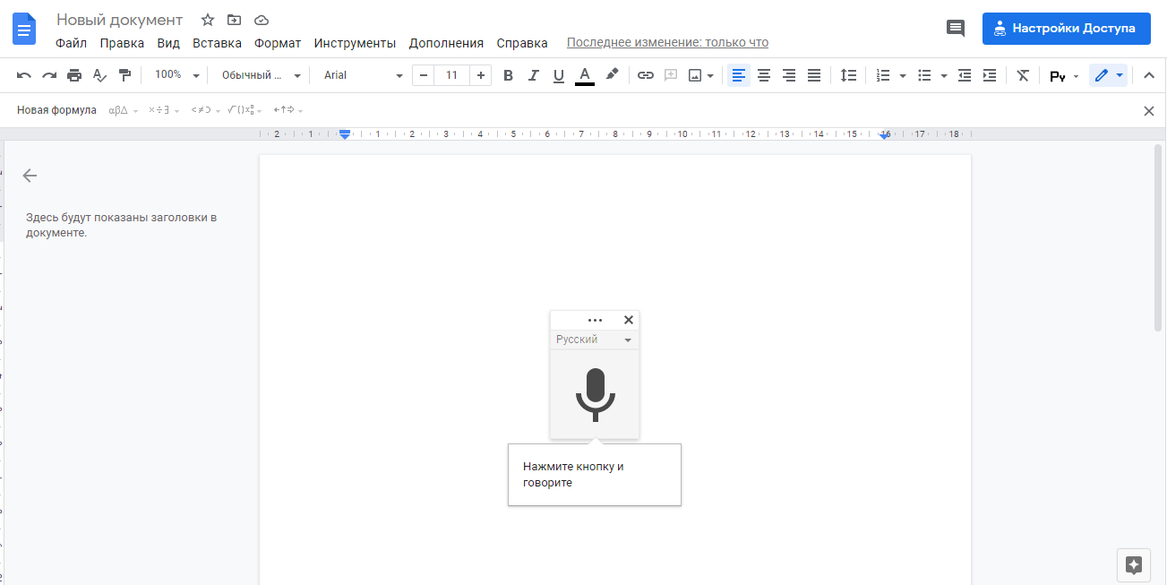 Это инструмент, с помощью которого можно диктовать тексты и давать возможность глазам отдохнуть от непрерывной работы. Алгоритм распознает знаки пунктуации, реагируя на команды «запятая», «точка», умеет разделять текст на абзацы. Он активируется в разделе «Инструменты» или нажатием Ctrl+Shift+S.