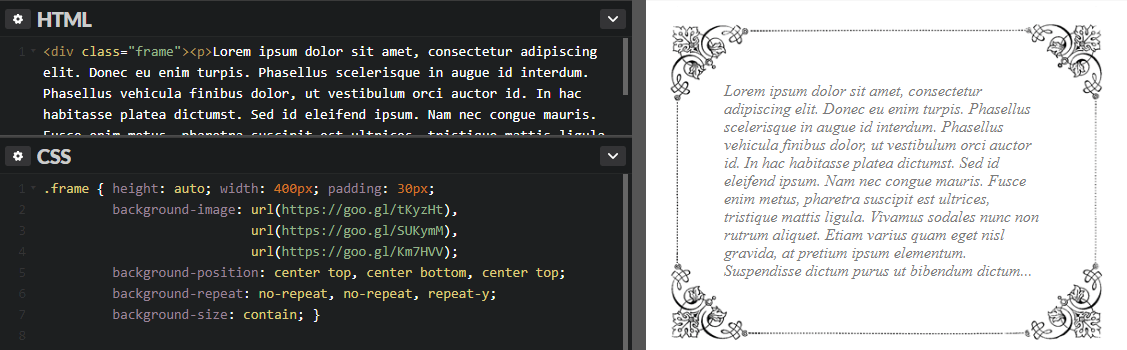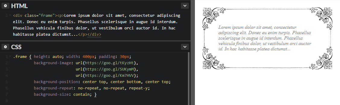 border: 10px solid black;  padding: 35px;  background: url(img_flwr.gif);
