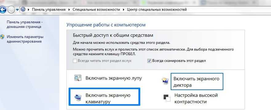 - В блоке «Упрощение работы с компьютером» будет пункт «Включить экранную клавиатуру».