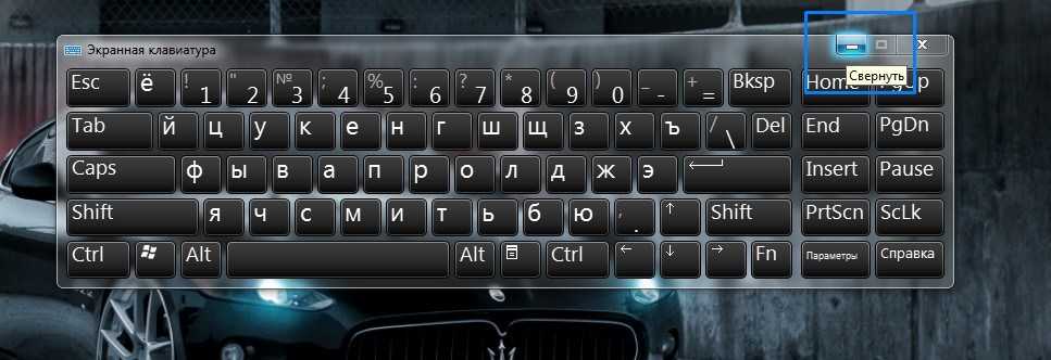Для того, чтобы свернуть окно программы «Экранная клавиатура