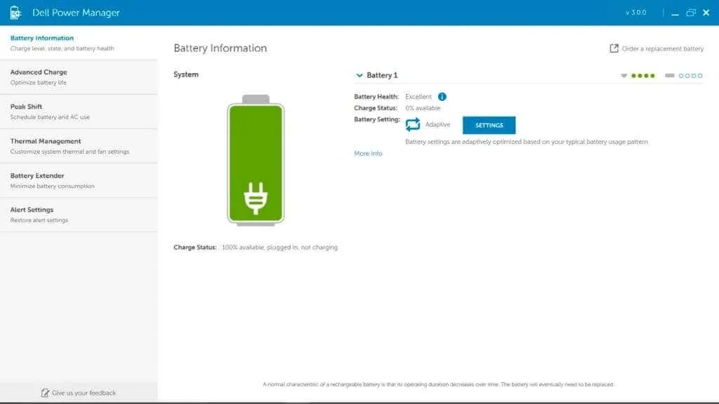Ноутбуки Dell поставляются с предустановленной утилитой Dell Power Manager. Все, что вам нужно сделать, это запустить приложение, открыть вкладку «Информация о батарее» и выбрать настройки.