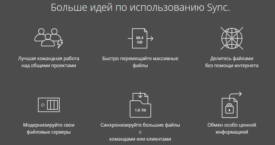| Dropbox | Сервис для автоматической синхронизации файлов любых размеров. Есть продвинутые настройки приложения для ПК, включая синхронизацию отдельных папок и настройку скорости загрузки и выгрузки файлов, инструменты для организации работы пользователей с данными в облаке. Отличие от большинства сервисов — хранение разных версий файлов без использования места в облаке, а также применение метода DeltaSync: на сервер передается не весь объект, а только измененная часть, что уменьшает трафик. |