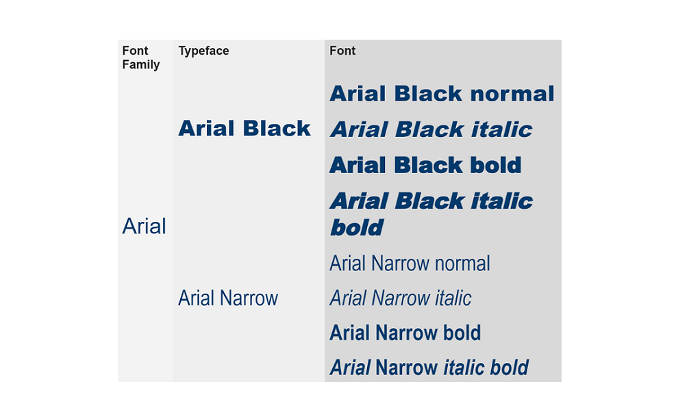 Font family is a group of related, similar in design typefaces. The members of a family have a common name.