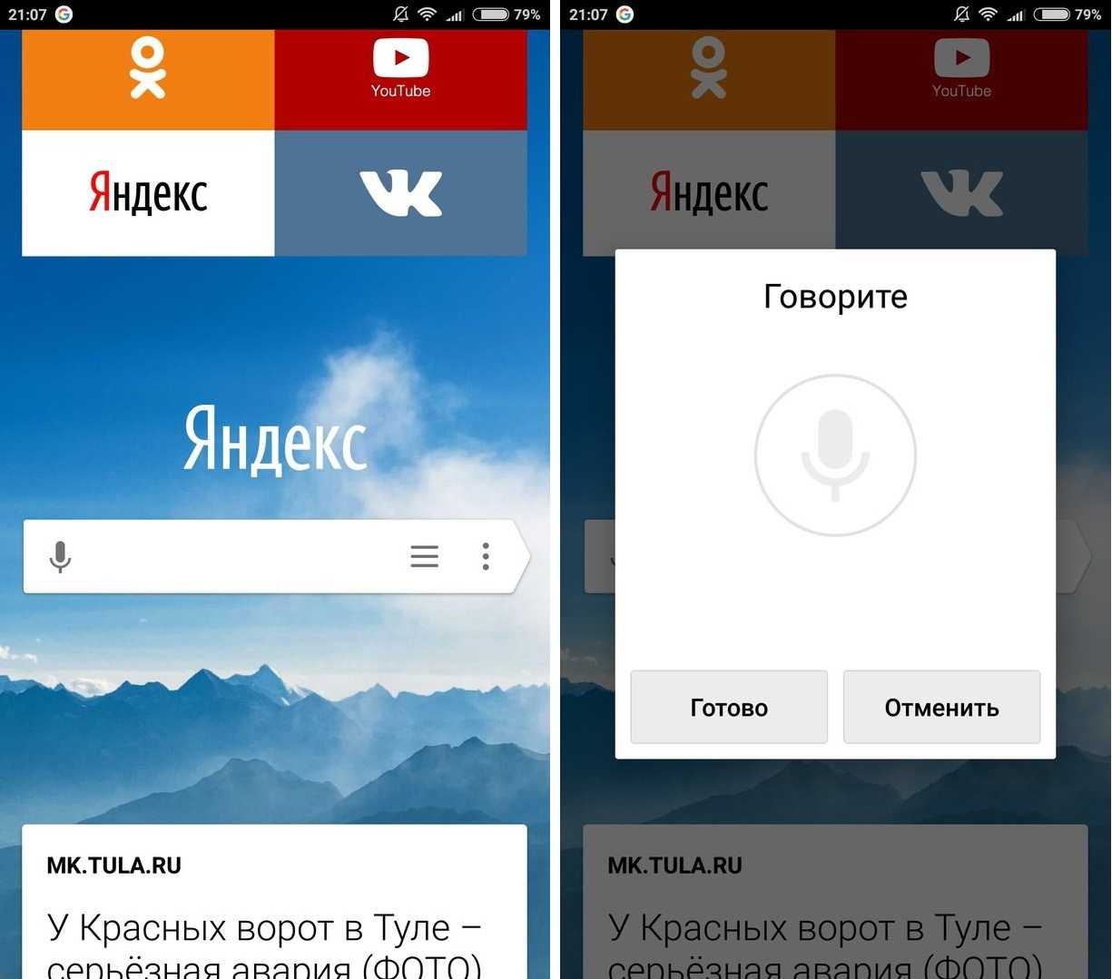 Использовать голосовой поиск Яндекса на мобильных устройствах можно через Яндекс.Браузер.
