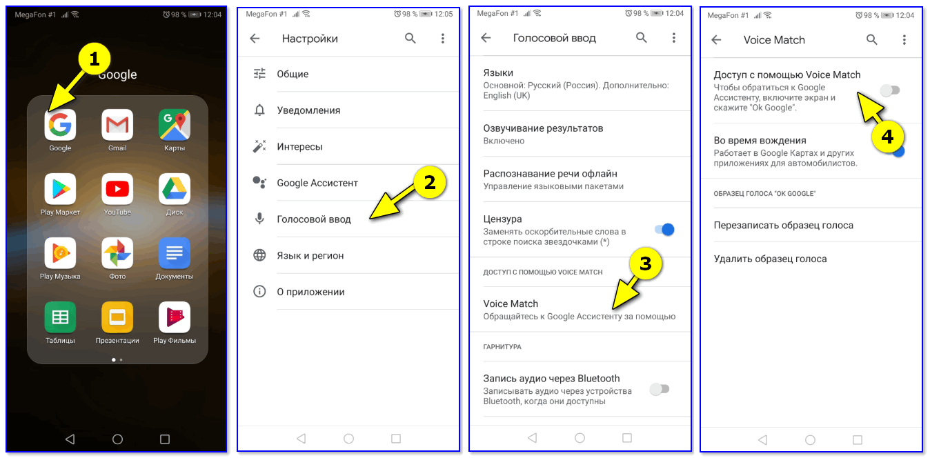 Указываем все необходимые настройки, прежде всего это Распознавание «Окей Google»: