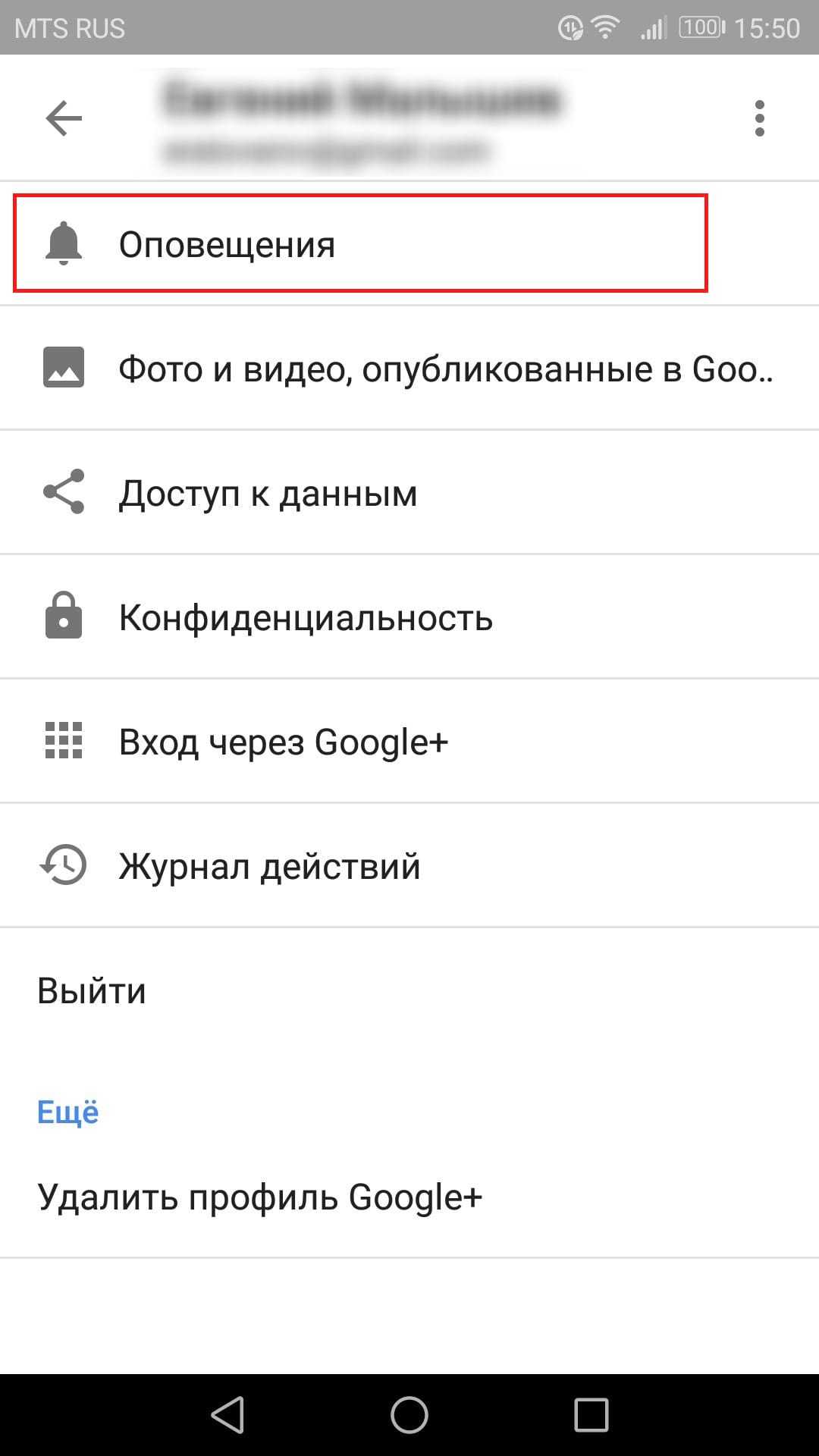 Прокрутите вниз, пока не увидите раздел «Оповещения». Вот здесь можно полностью отключить оповещения Google+. Просто установите переключатели в положение «Отключено» на любом варианте уведомления, которое необходимо отключить. Легко и быстро.