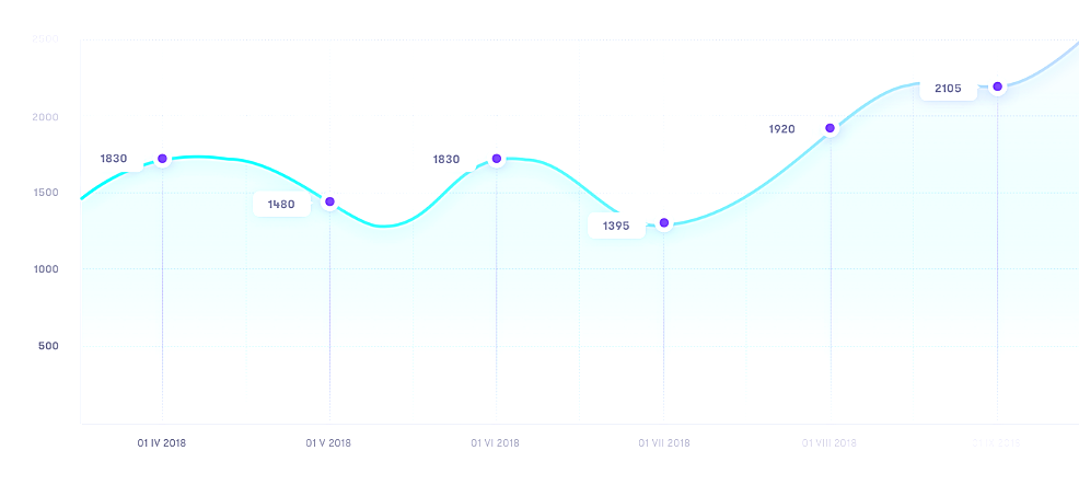 В этом типе диаграмм возможность сравнивать значения уходит на второй план, но все еще остается возможной, с помощью маркеров на графике, которые ставятся через одинаковые промежутки.