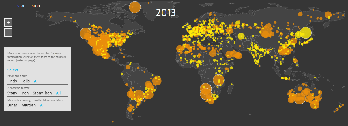 Карта падения метеоритов