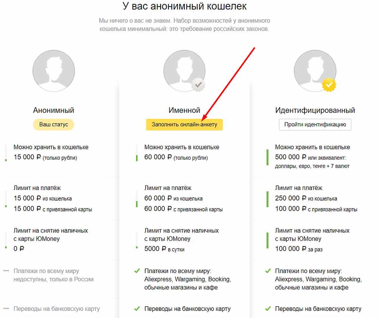 Граждане РФ имеют наибольший выбор вариантов для прохождения идентификации в ЮMoney и получения статуса «Идентифицированный» (если не подходит вариант со статусом «Именной, который можно получить после заполнения анкеты в личном кабинете ЮMoney). Пройти идентификацию можно: