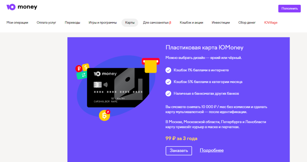 Выпуск пластиковой и виртуальной карты Yandex Money (ЮMoney)