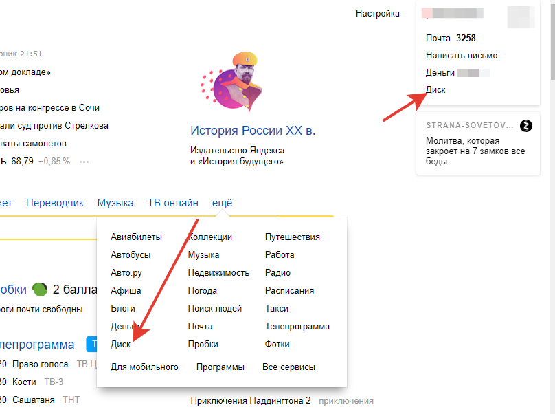 Заходим на Яндекс диск из своего аккаунта в Яндексе.