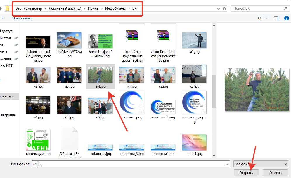 Далее находим нашу фотографию в папке облака, выделяем её и видим, что она открылась справа в окне.