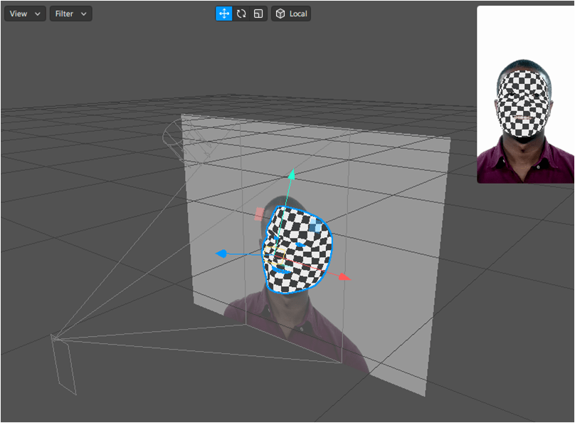 - Добавляется трекинг лица. Это прототип и отражение, куда накладываются желаемые эффекты. Работая с ним, можно делать необходимые движения и легкие повороты головы, которые будут фиксироваться приложением.