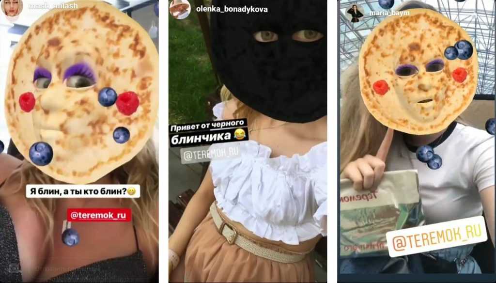 Кафе-кулинария использовала собственные маски для повышения узнаваемости бренда. Идея «блинных селфи» очень понравилась клиентам.