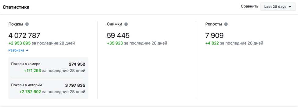 Мы можем и отслеживать статистику использования фильтра. Открыть её также можно в Spark Ar Hub на вкладке «Insights».