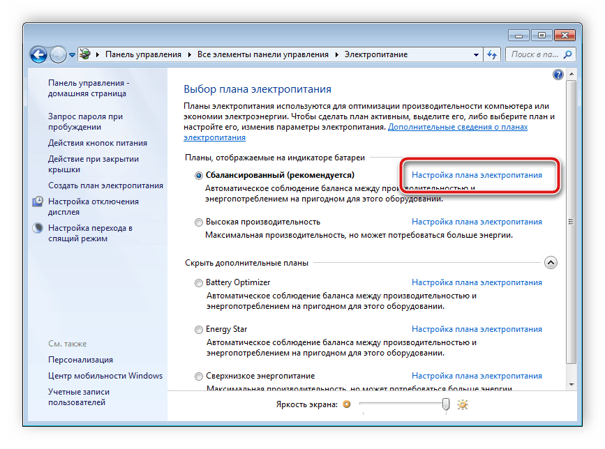 В Виндовс имеется встроенная функция, позволяющая настраивать план электропитания. Среди всех параметров там находится и конфигурация яркости. Изменяется она следующим образом: