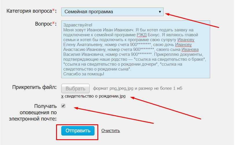 - ШАГ 3. Глава семьи должен войти в Личный кабинет РЖД Бонус. В форме обратной связи необходимо прикрепить отсканированные документы, подтверждающие семейные и родственные связи с другими участниками программы. Например, подойдут сканы свидетельства о браке, свидетельства о рождении детей. Как только другие члены семьи будут прикреплены к счету Главы семьи, все баллы будут копиться на одном счете.