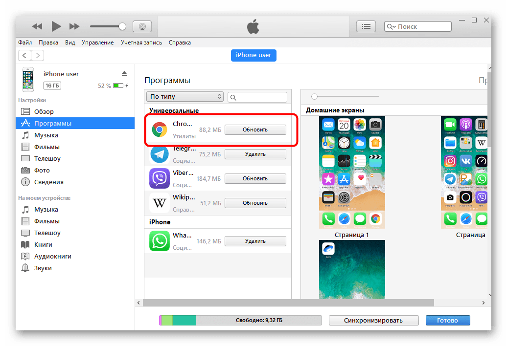 При этом сам iPhone будет несколько минут недоступен. Также, из окна iTunes можно запустить обновление ОС. Принудительно установить новые версии для каких-то программ нельзя. Возможно, эту функцию вернут позже. Она включала в себя нажатие и выбор соответствующего пункта на конкретной программе.