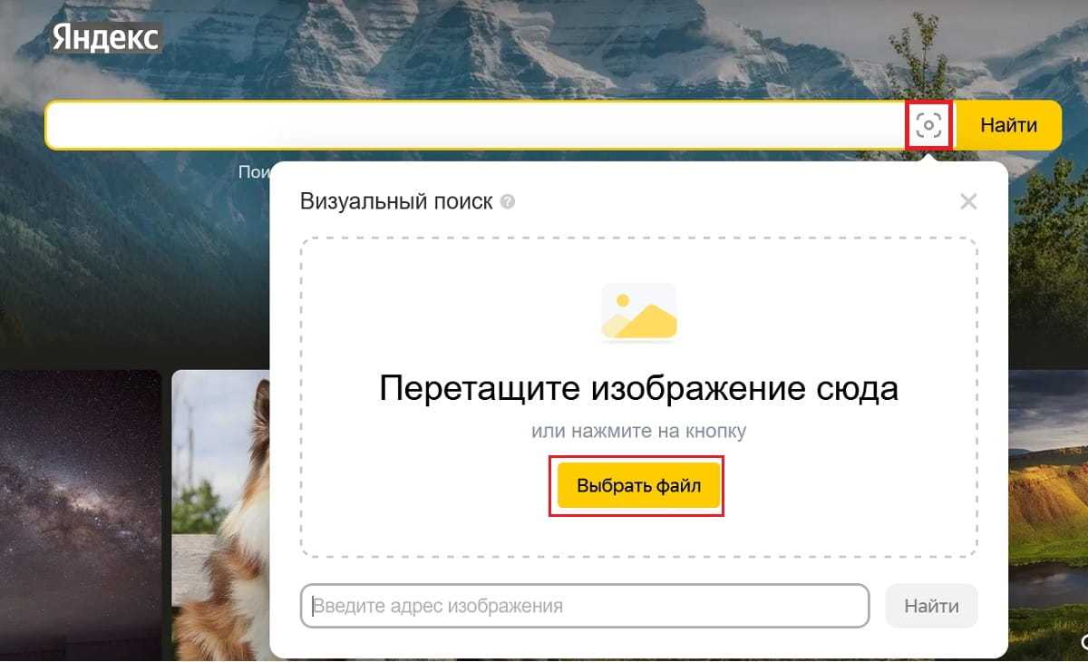 Открываем «Картинки». В поисковой строке есть значок камеры, нажимаем на камеру. Можно либо ввести ссылку на картинку, ее другое название — адрес изображения. Ссылку можно скопировать из интернета.