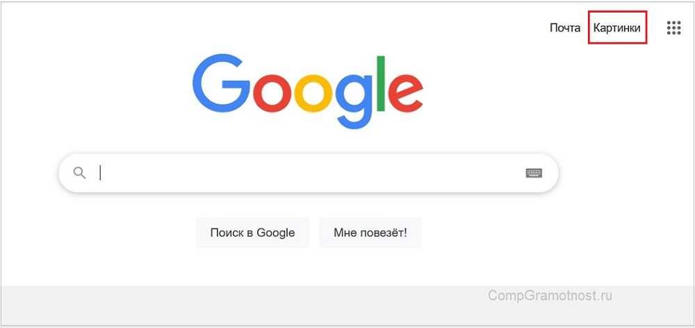 На главной странице поисковика Google есть ссылка «Картинки» (рис. 1):