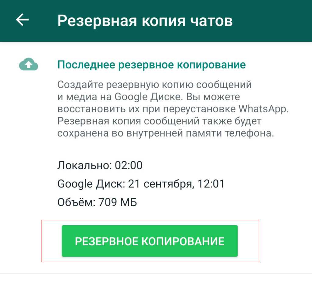 Для этого вам нужно установить резервное копирование ваших чатов. Зайдите в Настройки – Чаты – Резервная копия чатов. Затем вы можете выбрать резервное копирование ежедневно, еженедельно или ежемесячно. Whatsapp будет копировать ваши чаты только, когда телефон включен.