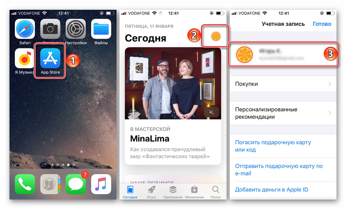 На открывшейся странице Магазина тапните по иконке своего профиля, а затем непосредственно по имени учетной записи.