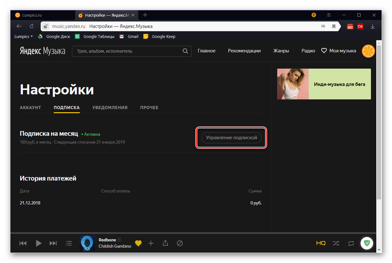 Примечание: В примере ниже будет показана отмена другой подписки, но в случае с Яндекс.Музыкой требуется выполнить ровно те же действия.