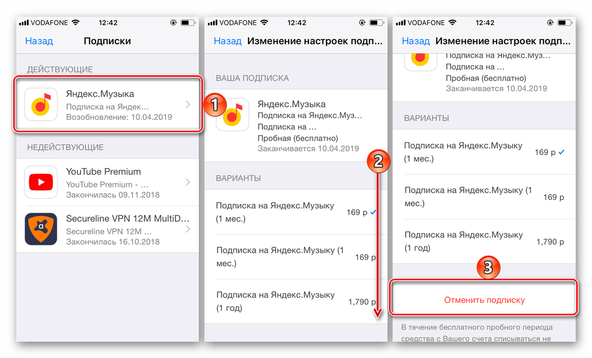 Как мы уже сказали выше, подписка на Яндекс.Музыку, оформленная через предустановленный на смартфоне или планшете магазин приложений, только через него и может быть отменена. В первую очередь рассмотрим, как отписаться от Яндекс.Музыки на Айфоне, поскольку потенциальные сложности чаще всего возникают именно с ним.