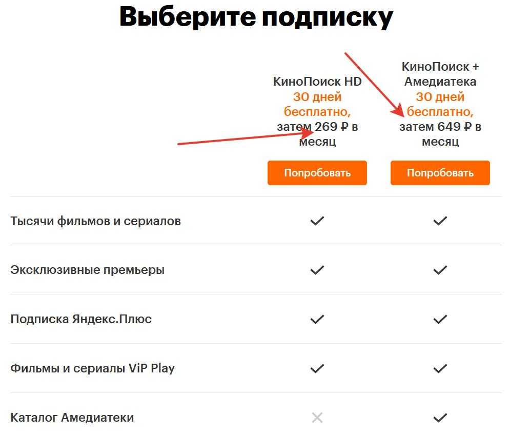 Важно знать, что у Кинопоиска есть несколько вариантов подписок: