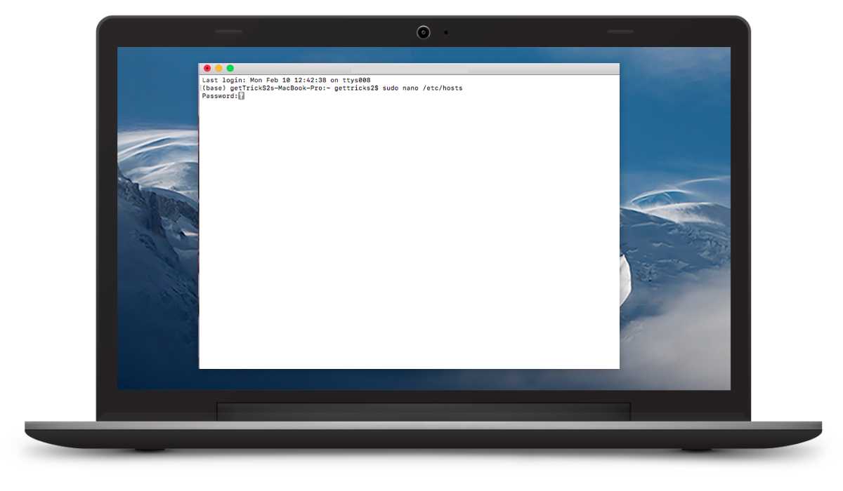 Шаг 2. В программе напишите следующую команду: sudo nano /etc/hosts