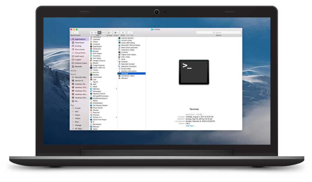 Шаг 1. Откройте программу «Терминал». Для этого откройте Finder → Программы → Утилиты → Терминал
