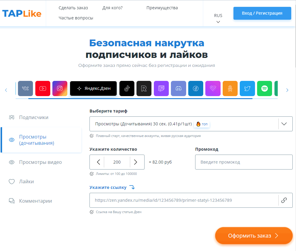 При этом сервис увеличивает показатель постепенно, что сбережет аккаунт от проверок и блокировки со стороны администрации. На сайте представлено множество тарифов для любого бюджета, а на каждое совершенное действие выдается гарантия качества, подтверждающая, что выбранное число показов обязательно отразится в профиле.