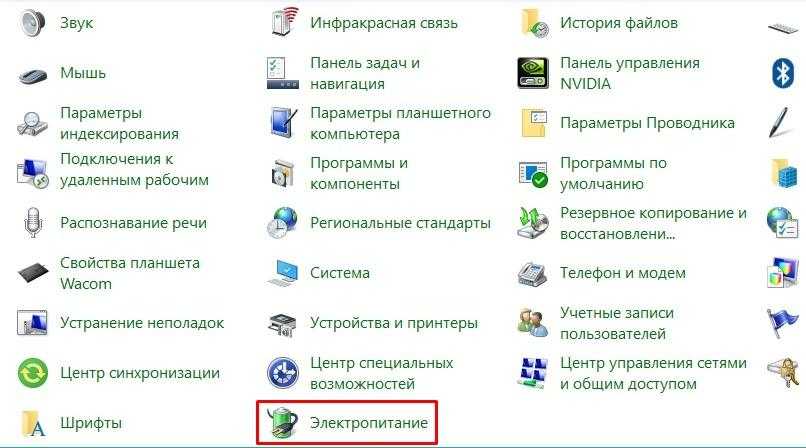 Изменение некорректных настроек электропитания