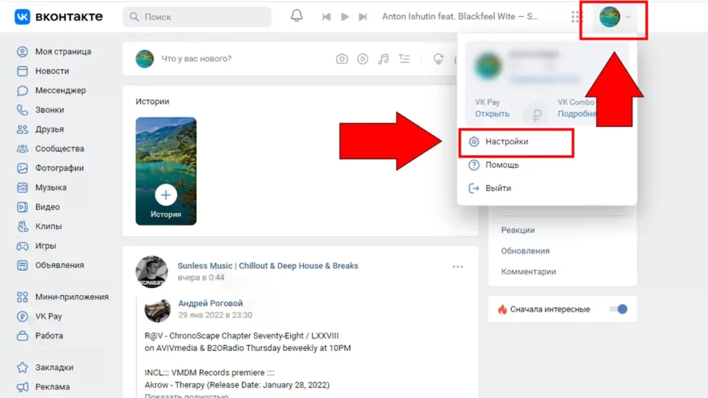 - откройте дополнительное меню сайта, нажав на значок своего профиля в правом верхнем углу окна;