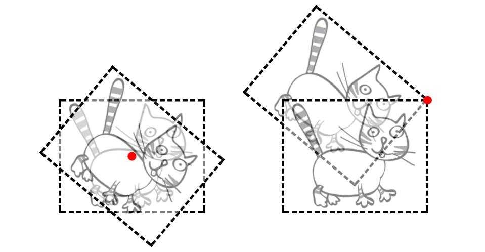 По умолчанию вращение блока осуществляется вокруг его геометрического центра. Для изменения этой точки необходимо воспользоваться свойством transform-origin.